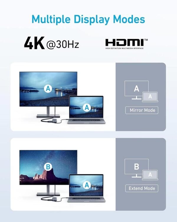 Anker 5-in-1 USB-C Hub is a versatile and compact solution designed to enhance your connectivity and productivity. With its high-speed data transfer capability of up to 5 Gbps, you can effortlessly transfer movies, music, and other large files in just seconds. The hub also features an ultra HD display, allowing you to easily stream media or extend your screen to resolutions of up to 4K at 30Hz, providing crisp and clear visuals.