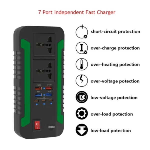 Offering an output of 300 watts, it converts DC power from your vehicle’s battery into AC power, making it suitable for charging and powering a variety of devices such as laptops, tablets, smartphones, cameras, and more. With two AC outlets and two USB ports, the inverter provides flexible and simultaneous charging options for multiple devices.